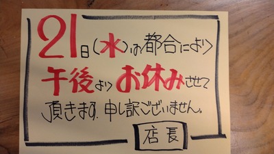 ★元気発信:日本酒情報★ ※21日(水)ですが、都合により午後からお休みさせて頂きます・・・